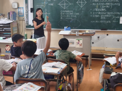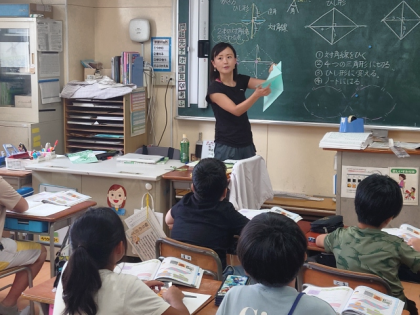 子どもたちは「同じ大きさの二等辺三角形を2つつけるとできる」などの意見を話していました。
