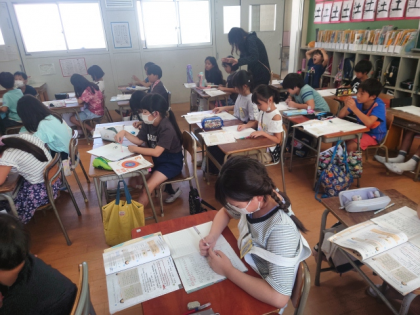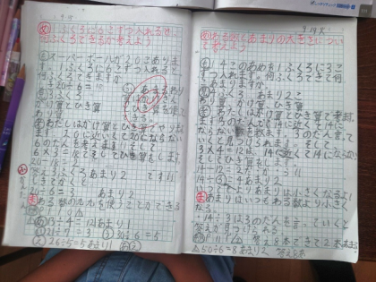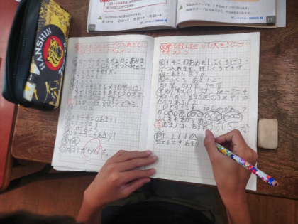 ノートに計算や自分の考えをしっかり書いて問題を解いていますね。