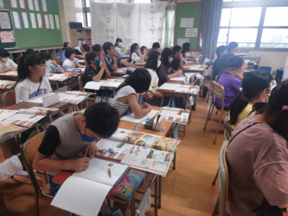 子どもたちは、鎌倉幕府と元軍がどのように戦い、その後どうなっていったのか、教科書や資料集で調べていました。