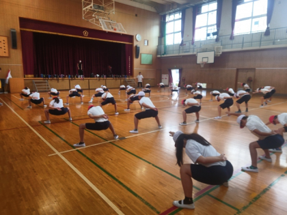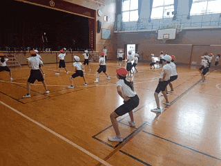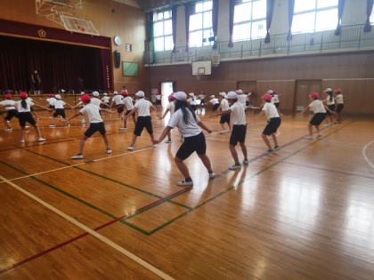 運動会に向けて、今日は、団体演技のソーランの練習をしています。