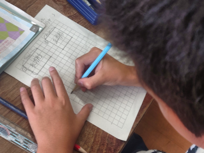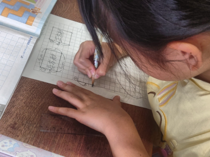 算数科の時間は、方眼紙に正方形、長方形など、いろいろな形の描き方を学習しました。