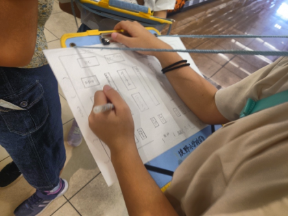子どもたちは、タブレットやたんけんボードを持って売り場を一生懸命調べて「お店の売り方のヒミツ」をたくさん見つけることができました。