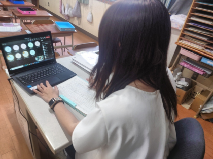 学習参観後、非常時の「オンライン学習」の実施に備え、1年生のTeamsの接続テストを実施しました。