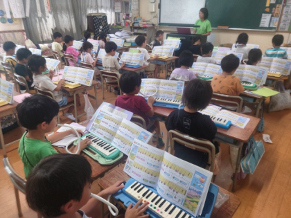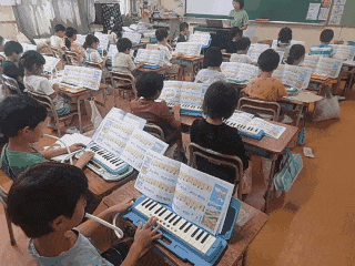 音楽科の時間は、鍵盤ハーモニカで「さかみち」や「よろこびの うた」の曲を練習しました。