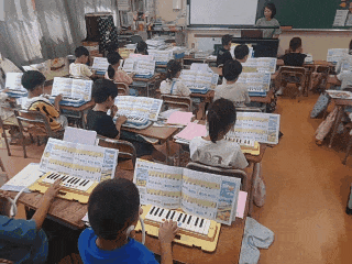 音楽科の時間は、鍵盤ハーモニカで「さかみち」や「よろこびの うた」の曲を練習しました。
