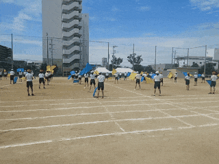 運動会に向けて、団体演技のフラッグの練習をしています。