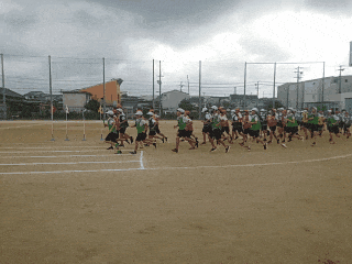 運動会に向けて、今日は、リレーの入退場や競技の練習をしました。