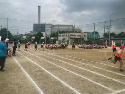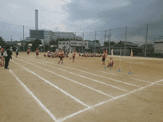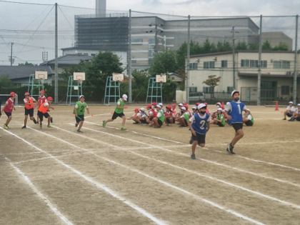 運動会に向けて、今日は、リレーの入退場や競技の練習をしました。