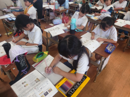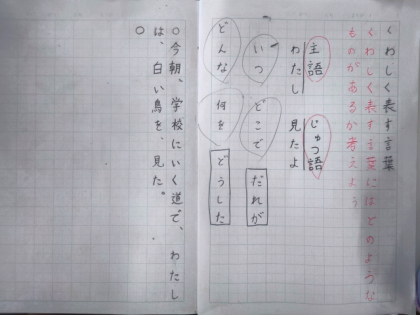 国語科の時間は、「いつ」「どこで」「どんな」「何を」など、「くわしく表す言葉」について学習しました。