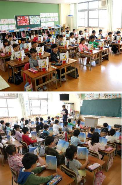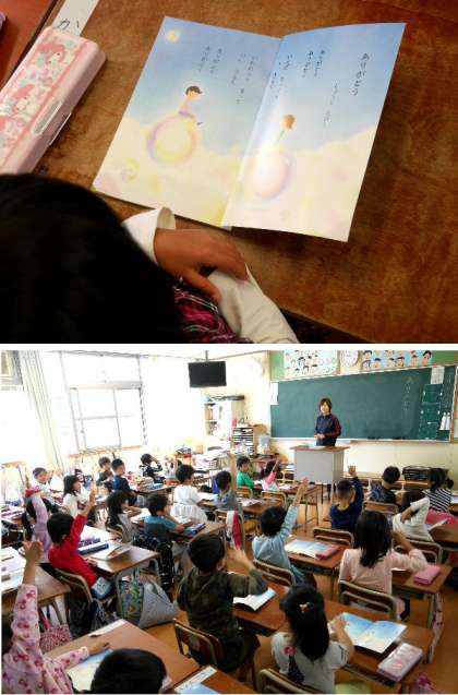 1年生の国語科の教科書に「ありがとう」という詩がのっています。1年生が皆で音読しています。「ありがとう いえば とっても いい きもち・・・」どんな時にありがとうを言いましたか?