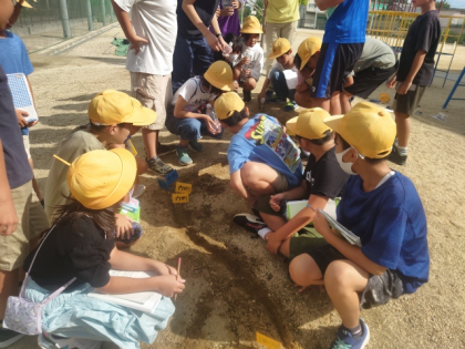 理科の時間は、流れる水にはどんな働きがあるのか、実際に土山に水を流し、水の流れの速さ、土の様子、地面のようすを調べました。