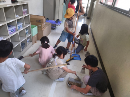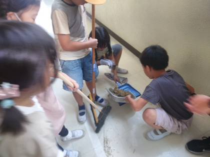 2年生の子どもたちが、職員室まわりを一生懸命そうじしています。