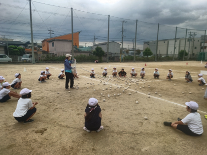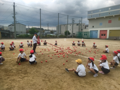 運動会に向けて、玉入れの練習をしました。