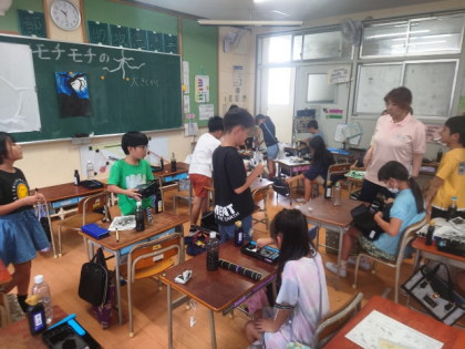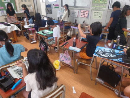 図工科では、国語科の教科書の教材文「モチモチの木」の場面を絵で表しました。