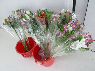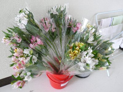 大阪鶴見花卉地方卸売市場にある「なにわ市場」から鶴見区内の小学生児童に花を贈っていただきました。花は「アルストロメリア」という百合水仙です。花言葉は「やわらかく気配り」だそうです。