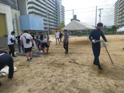 また、PTA役員の方が集まって明日の運動会に向けて準備をされていました。