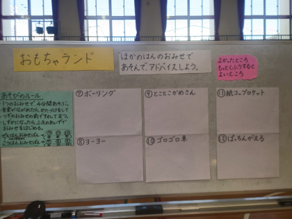 学級のみんなのアドバイスを活かし、楽しい遊びになるように工夫をして、「おもちゃランド」に1年生を招待するのが楽しみですね。