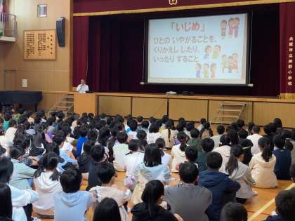 今日は、焼野小学校の「いじめについて考える日」。