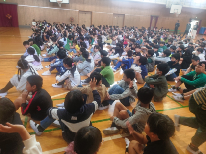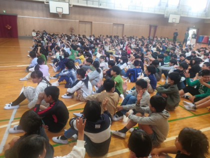 子どもたちは、よい姿勢でしっかりと話を聴くことができました。