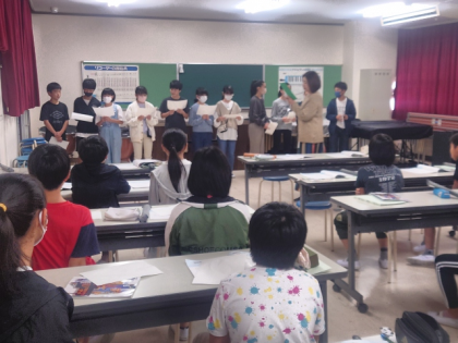 音楽の時間は、リコーダーの練習をした後、「ロック マイ ソウル」の曲を歌いました。