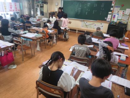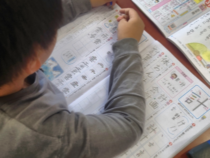 国語科の時間に、子どもたちが新出漢字の練習をしています。