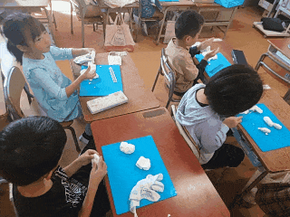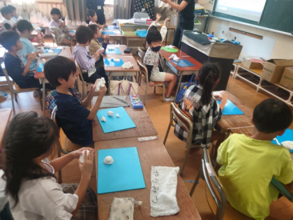 図工科の時間は、ねんどで「きのこ」をつくります。