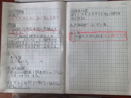算数科の時間は、「人口密度」の問題について考えました。
