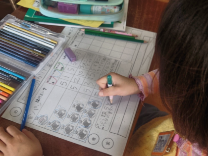 子どもたちは、「全部の数が5つずつ増えている」「5とびになっている」など、いろいろなことに気付いていました。