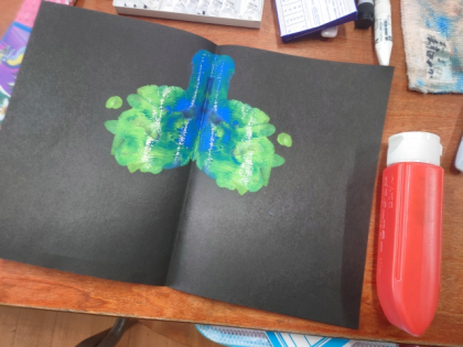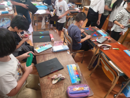 図工科の時間は、デカルコマニーのわざを使って、モンスターの顔を作ります。