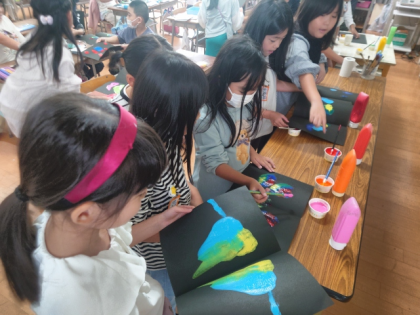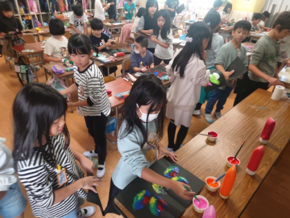 図工科の時間は、デカルコマニーのわざを使って、モンスターの顔を作ります。