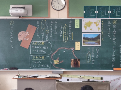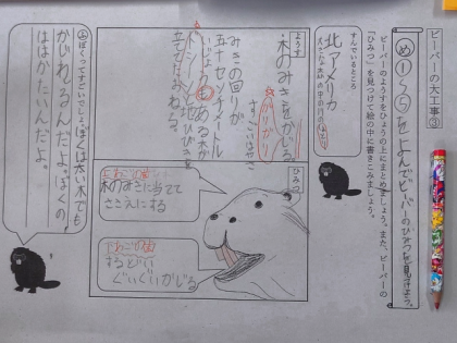 国語科の時間は、教材文「ビーバーの大工事」の学習をしています。