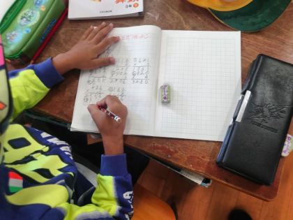 算数科の時間は、「426×6」「162×8」など「3けた×1けた」のかけ算の筆算の仕方を学習しました。