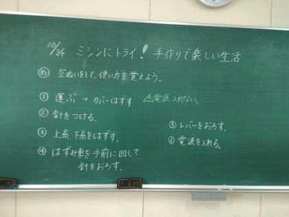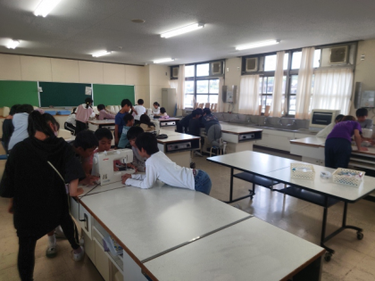 家庭科の時間は、ミシンの使い方を学習しています。
