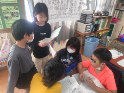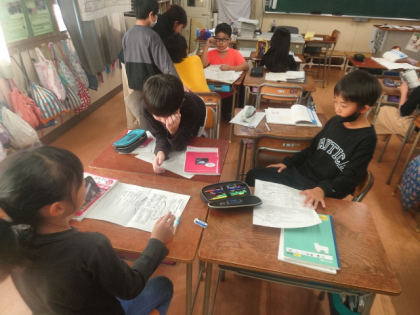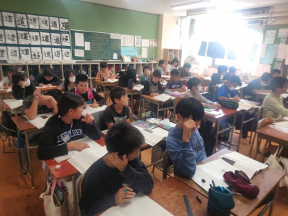 国語科では、説明文「くらしの中の和と洋」を読み取って、「和」と「洋」のよさやちがいについて調べ、紹介文を書く学習をしています。