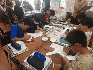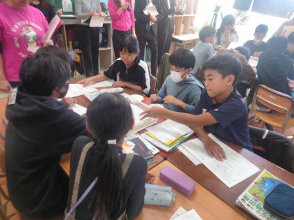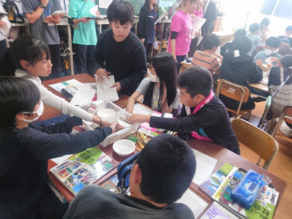 はさみやのりを使って自動車の模型を組み立てる作業をグループでしましたが、2回の作業を通して、子どたちは、品質の良い自動車を大量に生産するためには、チームワークや助け合い、役割分担、整理整頓などが大切なことに気付きました。