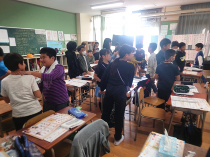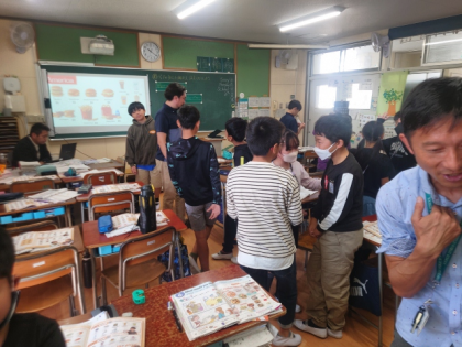 英語科の時間は、”What woud you like?”"I'd like〜"の表現を使って、ペアでハンバーガーのメニューを注文するやりとりを練習しました。