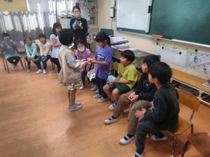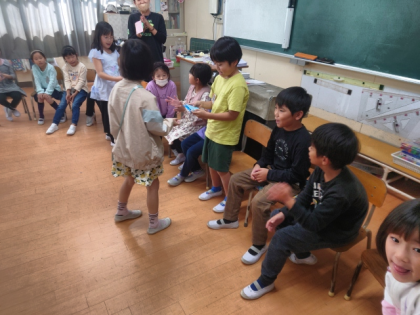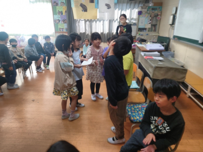 学活の時間に、10月生まれの友達をお祝いし、みんなで室内ゲームをして楽しむ「おたんじょう日会」をしました。