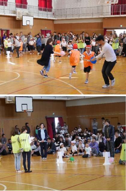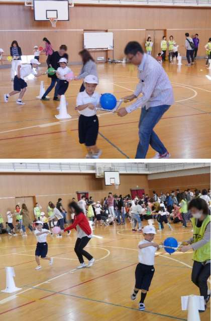 土曜授業PTA集会!1・2年生「みこしでワッショイ!ふわふわ風船運び」