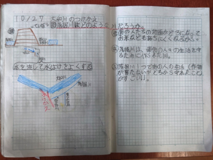 社会科では、「地域の発展に尽くした人びと」として、大和川の付け替えに尽力した中甚兵衛たちの働きについて学習しています。