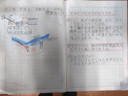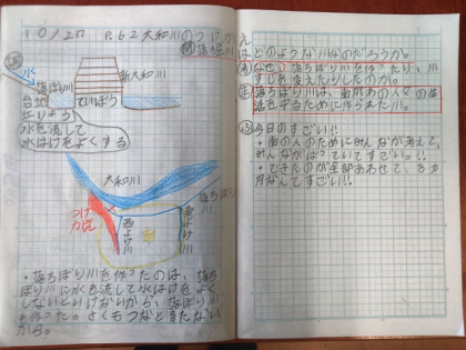 今日は、大和川のそばにある「落堀川」がなぜつくられたのか、みんなで調べました。