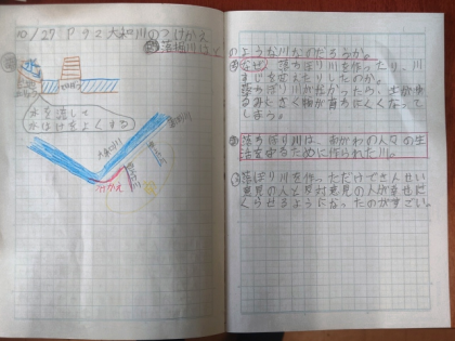 社会科では、「地域の発展に尽くした人びと」として、大和川の付け替えに尽力した中甚兵衛たちの働きについて学習しています。