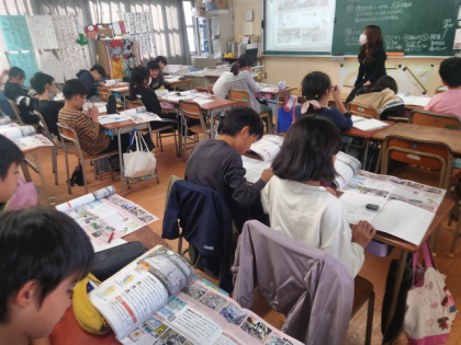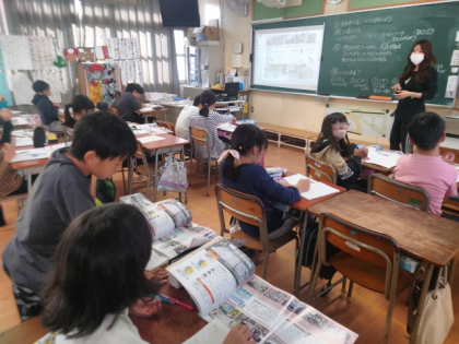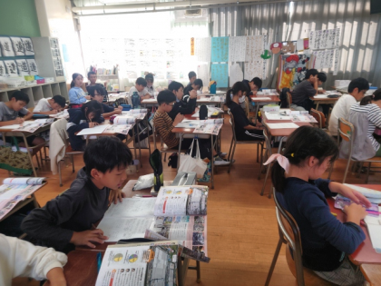 今日は、組立工場では、自動車づくりに携わる人びとが自動車をたくさんつくるためにどんな工夫や努力をしているのか、教科書をもとに調べました。