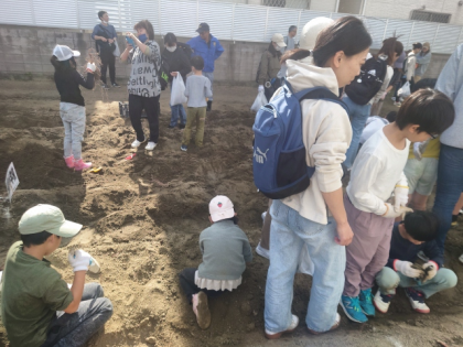 鶴見区の小学校の特別支援学級の合同行事として「いもほりえんそく」が行われました。焼野小学校からも、あゆみ学級の子どもたちや、家族の方が参加し、親子でいもほりを楽しみました。