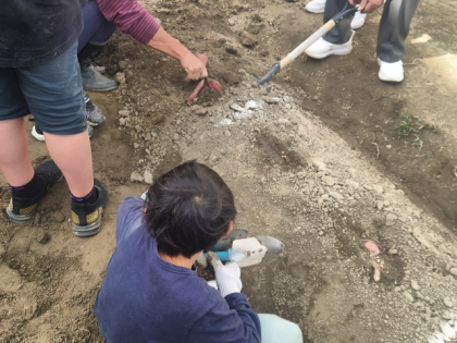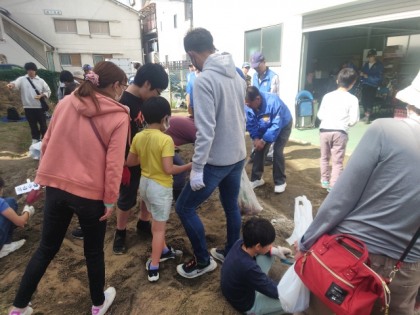 鶴見区の小学校の特別支援学級の合同行事として「いもほりえんそく」が行われました。焼野小学校からも、あゆみ学級の子どもたちや、家族の方が参加し、親子でいもほりを楽しみました。
