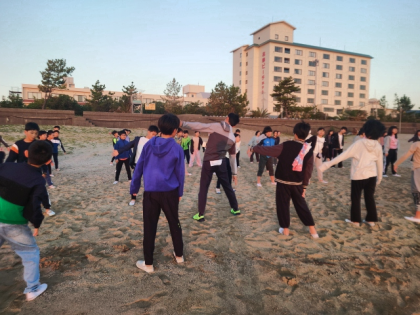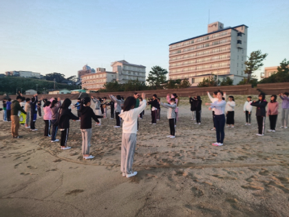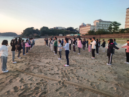 朝の体操、朝会のようすです。