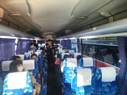 子どもたちを乗せたバスは、先ほど最後の休憩場所、香芝サービスエリアを出発し、現在西名阪道を順調に走行中です。