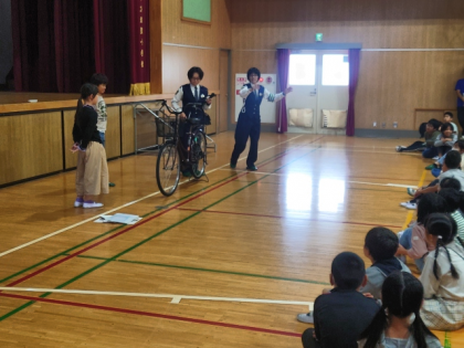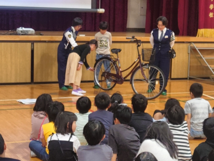 4・5・6年生は、正しく安全な自転車の乗り方について動画を見たり、警察官の方のお話を聞いたりして学びました。