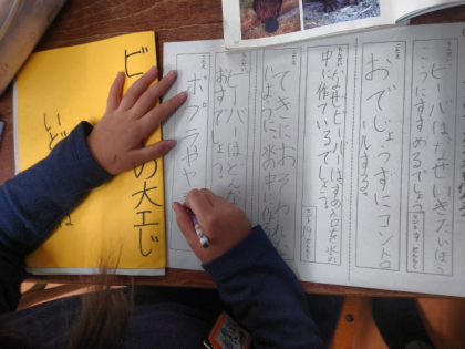 国語科では、教材文「ビーバーの大工事」の学習をしています。