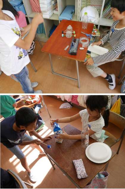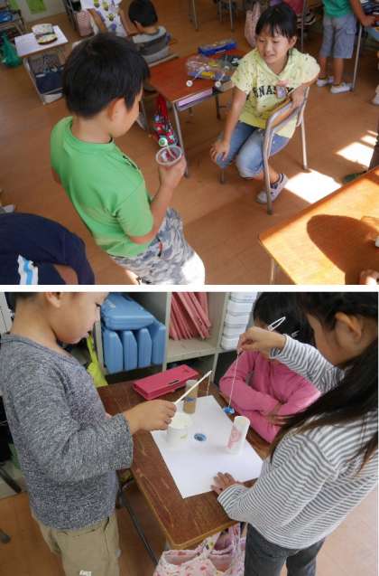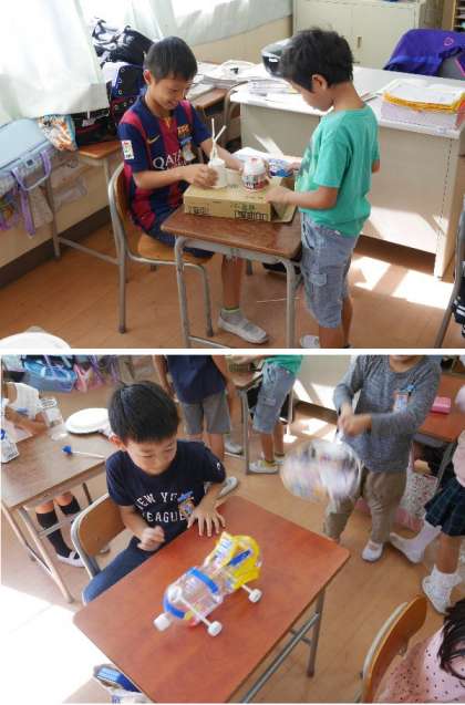 2年生が自分の作ったおもちゃを皆に使ってもらって、お互いに遊びました。おもちゃまつりでワッショイです。いろいろと工夫されたおもちゃが楽しいね。