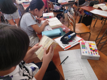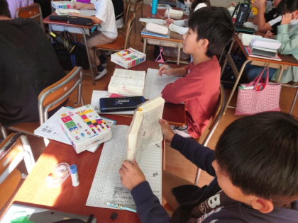 国語科の時間は、辞書を片手に、教科書の説明文「ごんぎつね」に出てくる言葉の意味調べをしました。